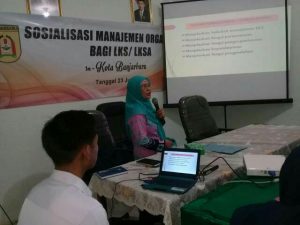 Sosialisasi Manajemen Organisasi Bagi LKS/LKSA Di Aula Dinas Sosial Kota Banjarbaru. Jumlah Pengunjung: 66