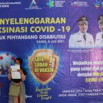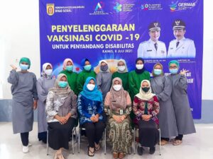 Bertempat di Aula Dinas Sosial Kota Banjarbaru Penyelenggaraan Vaksinasi Covid – 19 untuk Penyandang Disabilitas Tahap ke II. Dihadiri juga oleh Walikota Banjarbaru beserta jajaran, sasaran sebanyak 90 orang yang datang berjumlah 85 orang 5 orang tidak datang karena 2 orang vaksinasi di Pusekesmas, 2 orang lagi sakit dan 1 orang vaksinasi di Malang.