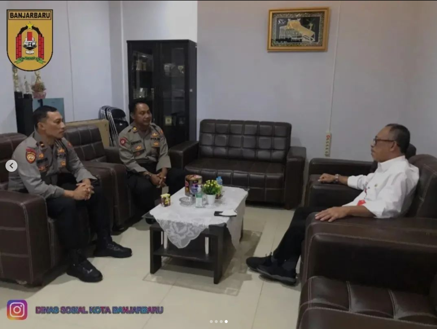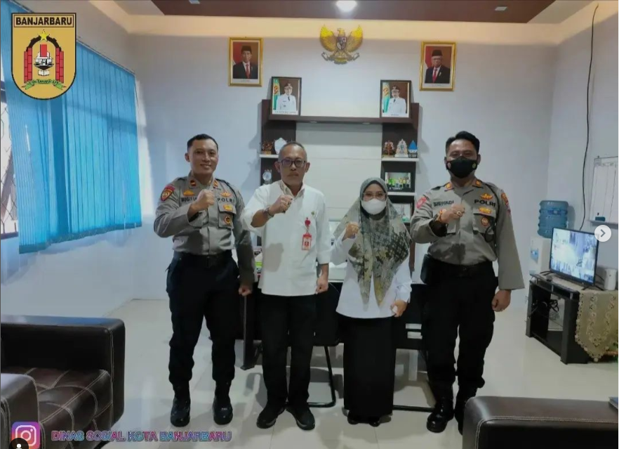 Silaturahmi dari Samapta Polres Kota Banjarbaru Berkoordinasi untuk Mensinergikan kegiatan dengan Dinas Sosial Kota Banjarbaru. Bersama Kepala Dinas Sosial Kota Banjarbaru dan Kepala Bidang Rehabilitasi Sosial Dinas Sosial Kota Banjarbaru.