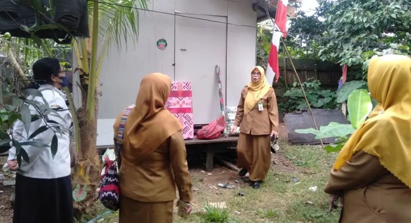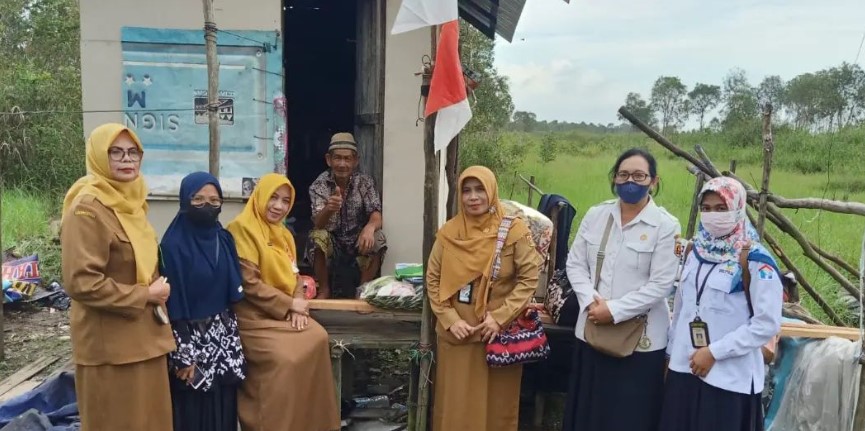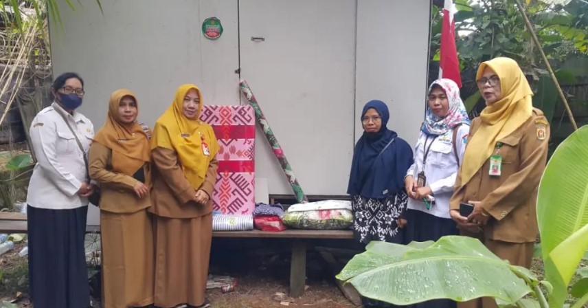 (Ibu Lesa) Bersama Dengan Pejabat Dinas Sosial dan Kelurahan Guntung Manggis membagikan Bantuan Kasur, Bantal, Selimut, Karpet dan Pakaian Kepada Penerima Layanan Homecare Sosial.