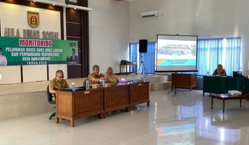 Dinas Sosial Kota Banjarbaru menggelar Monitoring Pelayanan Homecare, yang dihadiri Sekda Kota Banjarbaru H. Said Abdullah, Kepala Dinas Sosial Kota Banjarbaru, Rokhyat Riyadi, dan Staf Ahli Wali Kota Bidang Hukum dan Politik, Lesa Fahriana. Bertempat di Aula KH.Irsyad Djahri Dinas Sosial Kota Banjarbaru, Kegiatan ini bertujuan untuk mengevaluasi permasalahan dan kendala di lapangan, terkait pelaksanaan Homecare, sehingga diperlukan koordinasi dan kerjasama antar lintas sektoral terkait pelaksanaan pemberian layanan bagi lanjut usia dan penyandang disabilitas, agar dapat memenuhi kebutuhan dasarnya dengan layak.