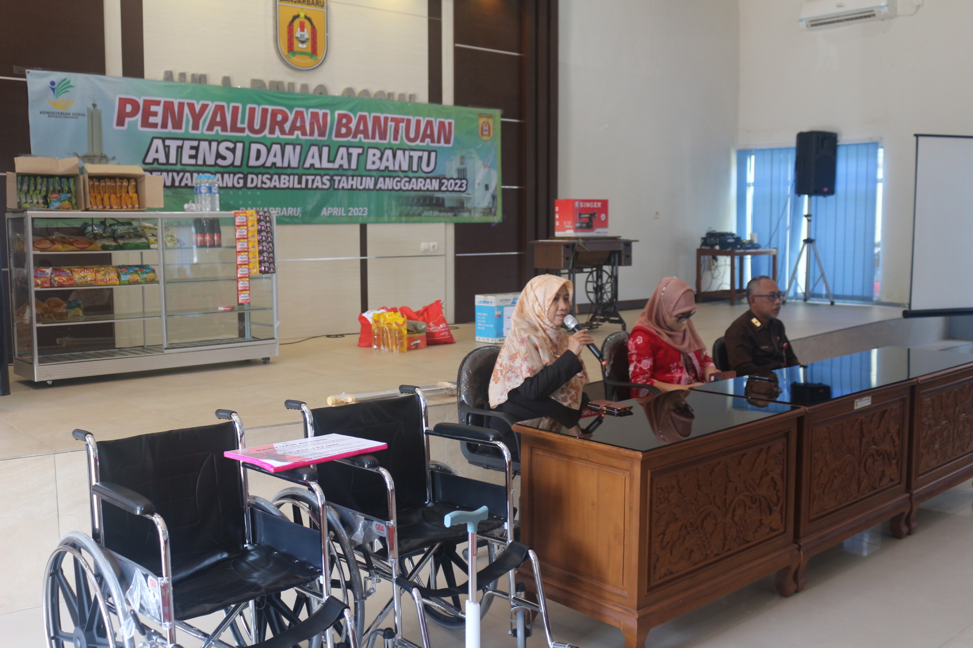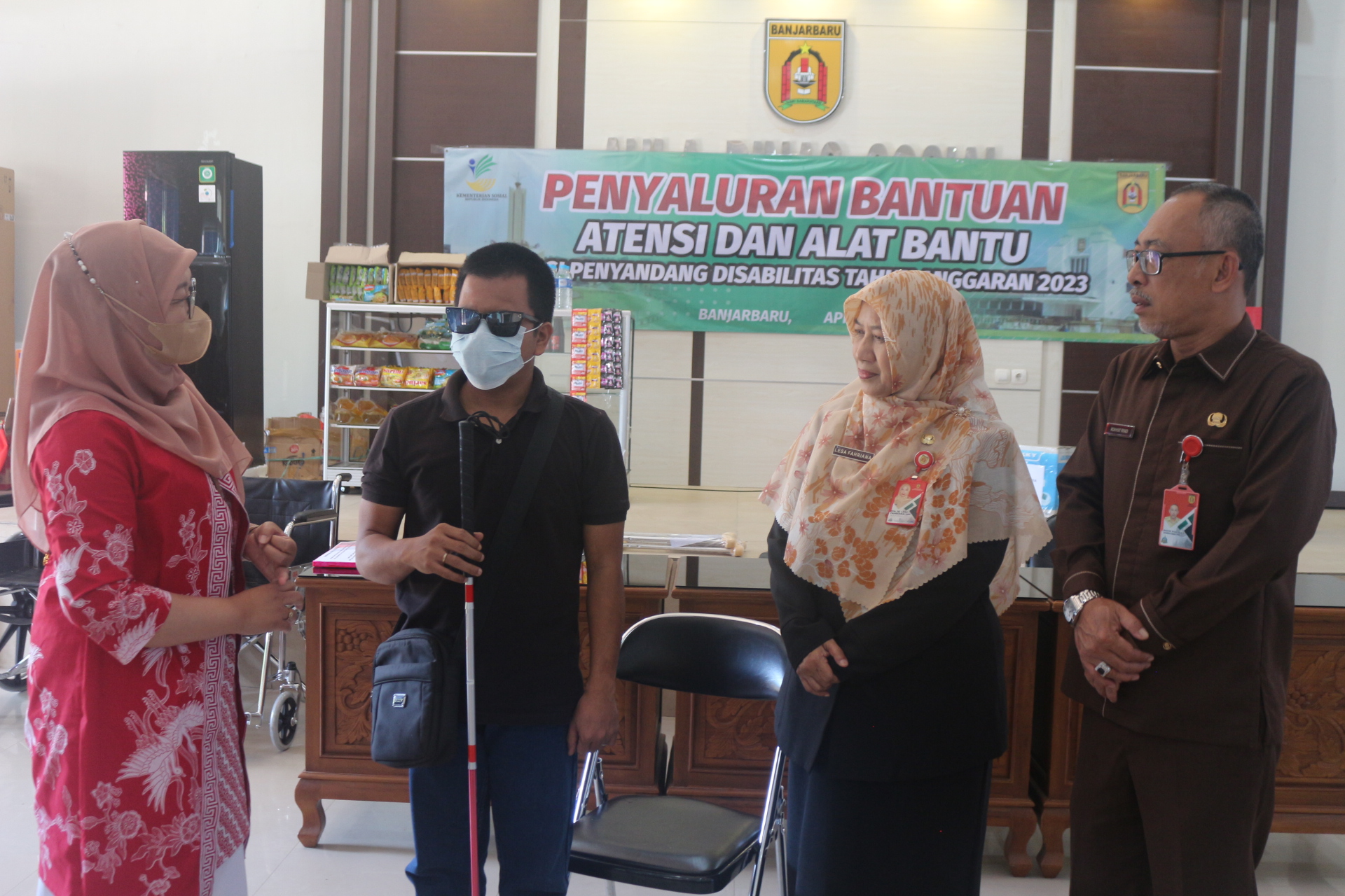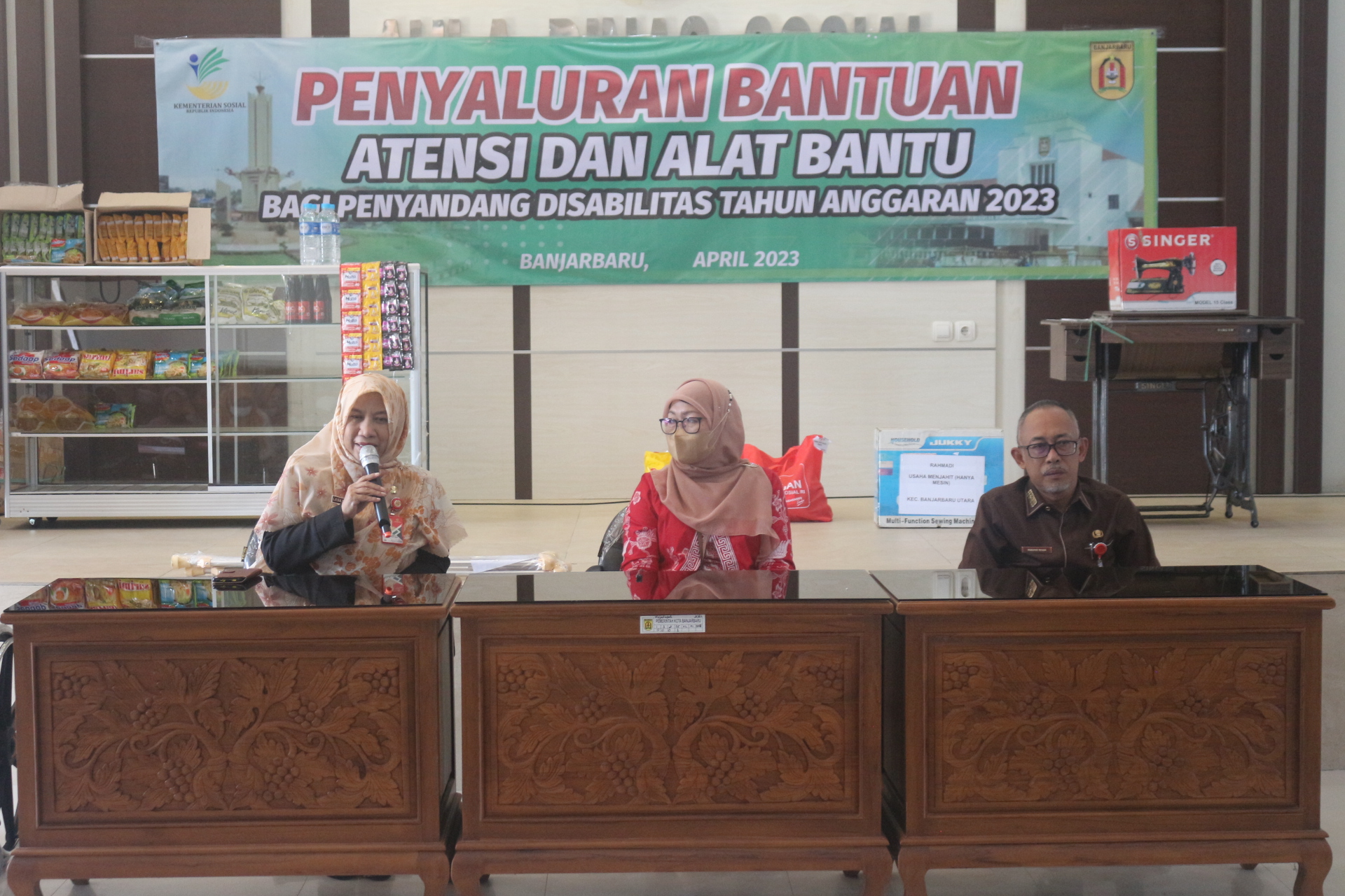 Penyaluran Bantuan ATENSI dan Alat Bantu Bagi Penyandang Disabilitas di Kota Banjarbaru secara simbolis yang dihadiri oleh Staf Ahli Wali Kota Bidang Hukum dan Politik Ibu Lesa Fahriana, Kepala Sentra Budi Luhur Kementerian Sosial RI, Kepala Dinas Sosial Kota Banjarbaru. Bertempat di Aula KH. Irsyad Djahri Dinas Sosial Kota Banjarbaru, pada Selasa (18/04/2023).