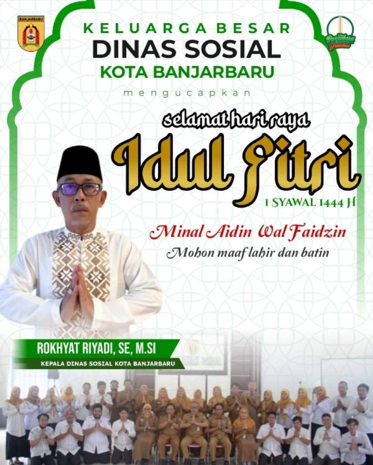 Kami Keluarga Besar Dinas Sosial Kota Banjarbaru Mengucapkan Selamat Hari Raya Idul Fitri 1 Syawal 1444 H.