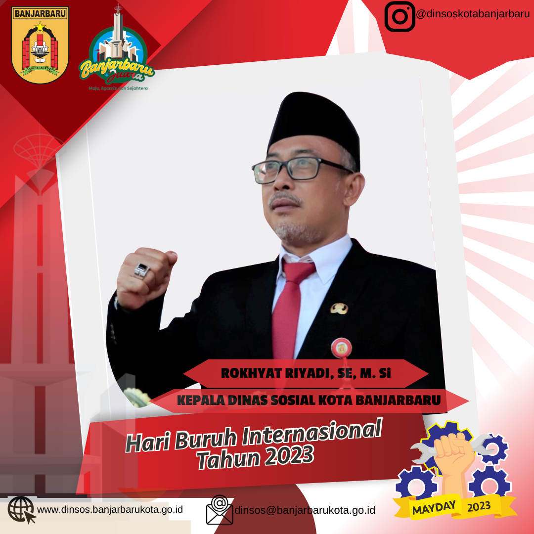 Keluarga Besar Dinas Sosial Kota Banjarbaru Mengucapkan Selamat Hari Buruh Internasional 1 Mei 2023.