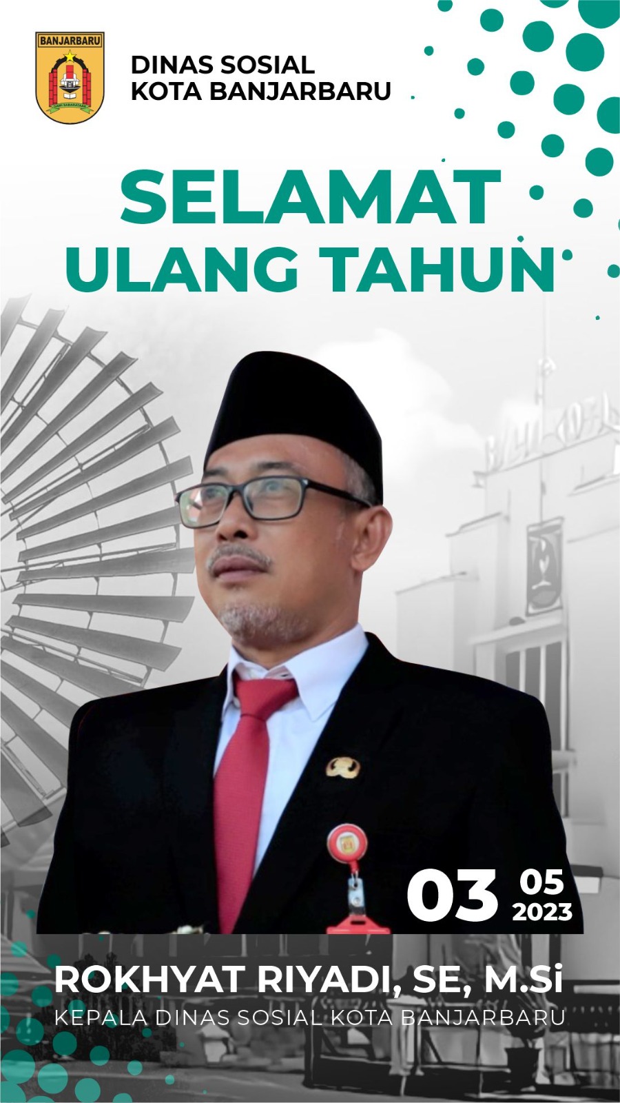 Keluarga Besar Dinas Sosial Kota Banjarbaru Mengucapkan Selamat Ulang Tahun Untuk Pimpinan Kami : Rokhyat Riyadi, SE, M. Si Semoga Panjang Umur dan Sehat Selalu, Tetaplah Menjadi Pimpinan Yang Adil dan Bijaksana 🤲🎉
