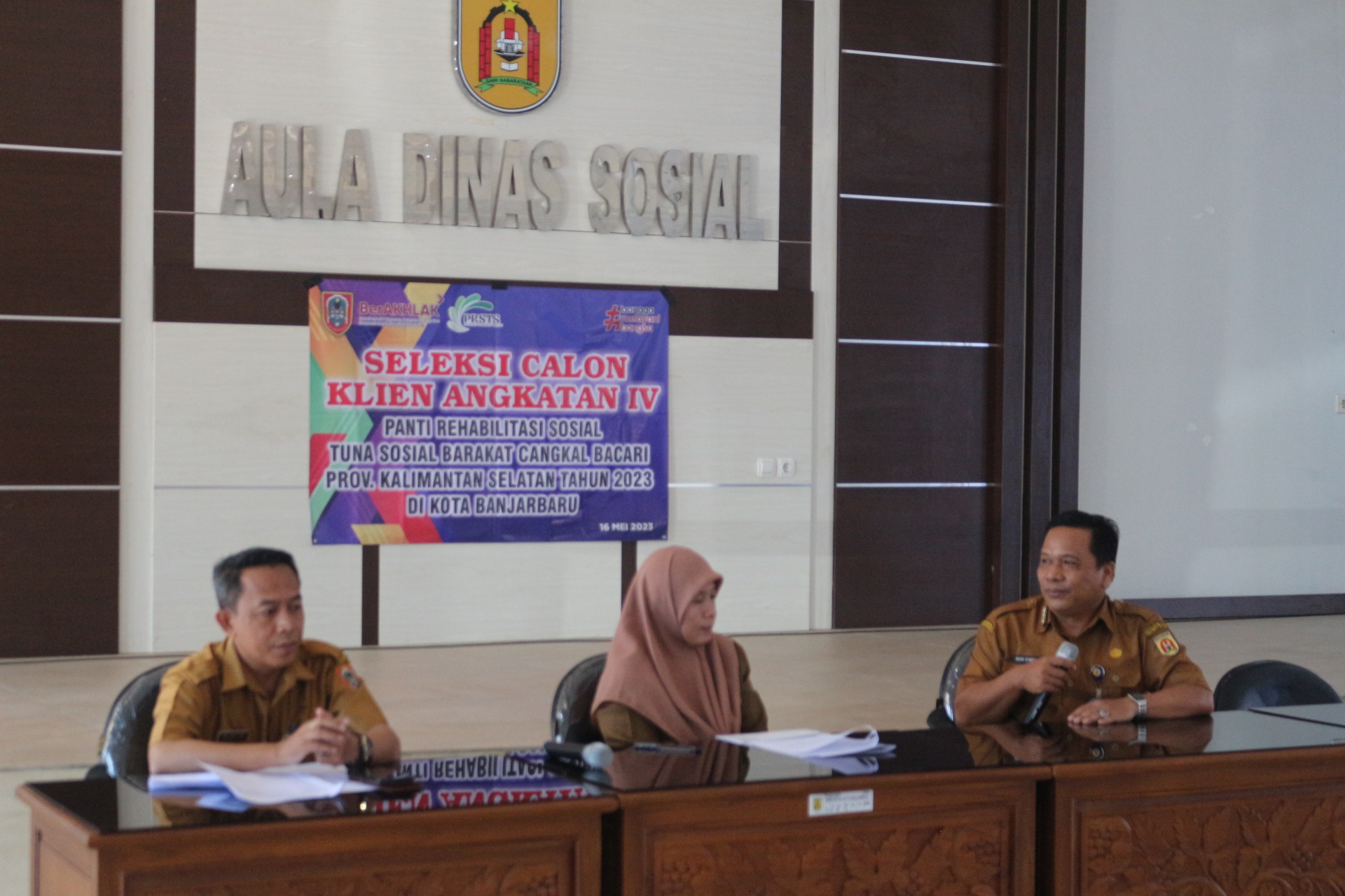 Selasa, 16 Mei 2023 Bertempat di Aula KH. Irsyad Djahri Kegiatan Seleksi Calon Klien Angkatan IV Panti Rehabilitasi Sosial Tuna Sosial Barakat Cangkal Bacari (PRSTSBCB) Provinsi Kalimantan Selatan Tahun 2023 di Kota Banjarbaru.