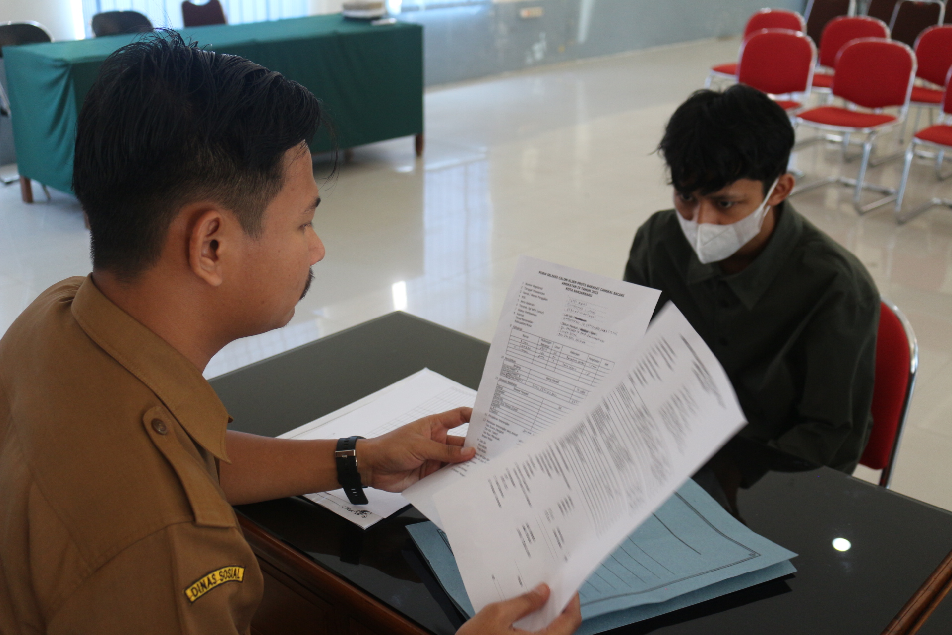 Calon Klien Berjumlah 6 Orang yang terdiri dari 4 orang laki-laki dan 2 orang perempuan. Turut hadir mendampingi Kepala Bidang Perberdayaan Sosial dan Kepala Seksi Pemberdayaan Sosial dan Kelembagaan Masyarakat.