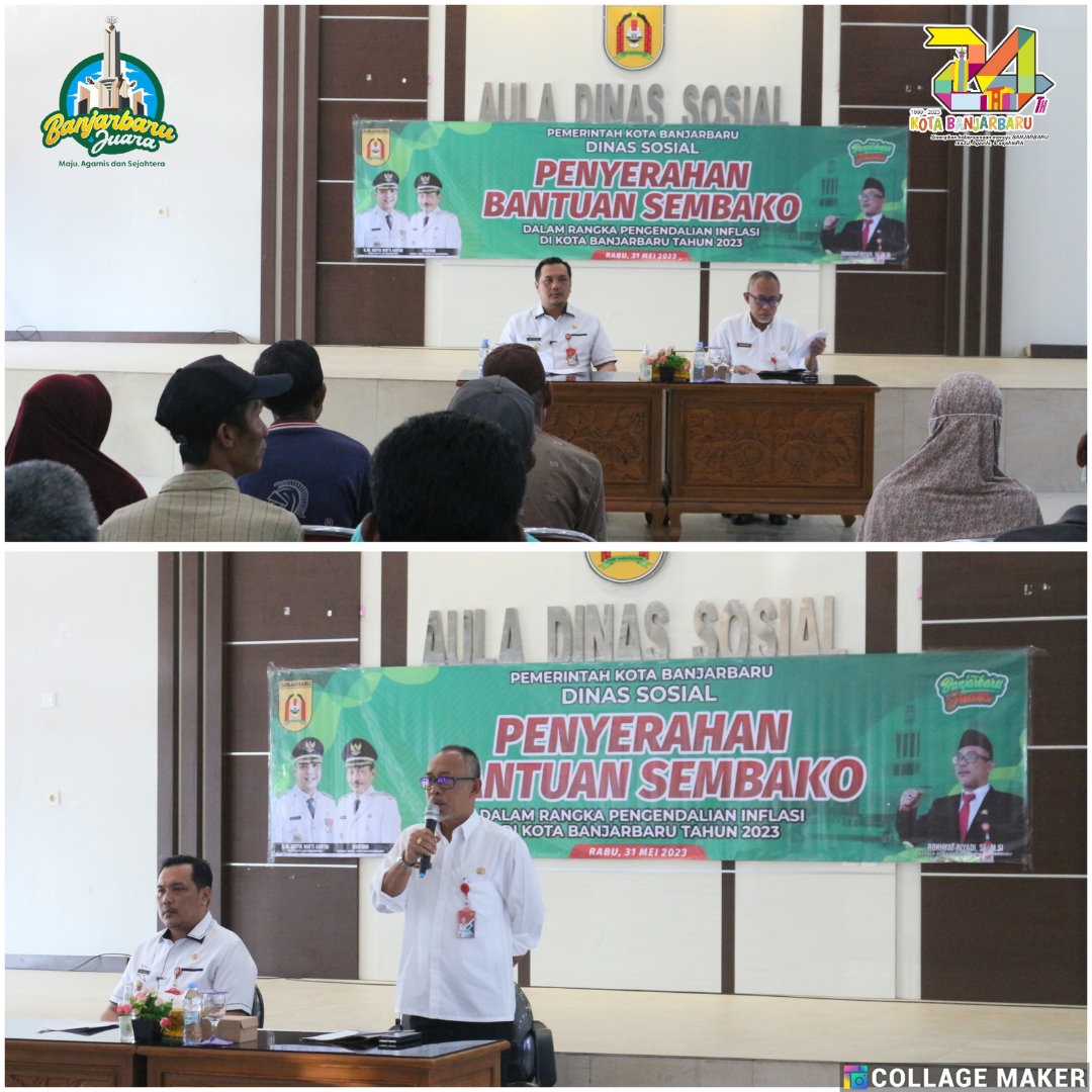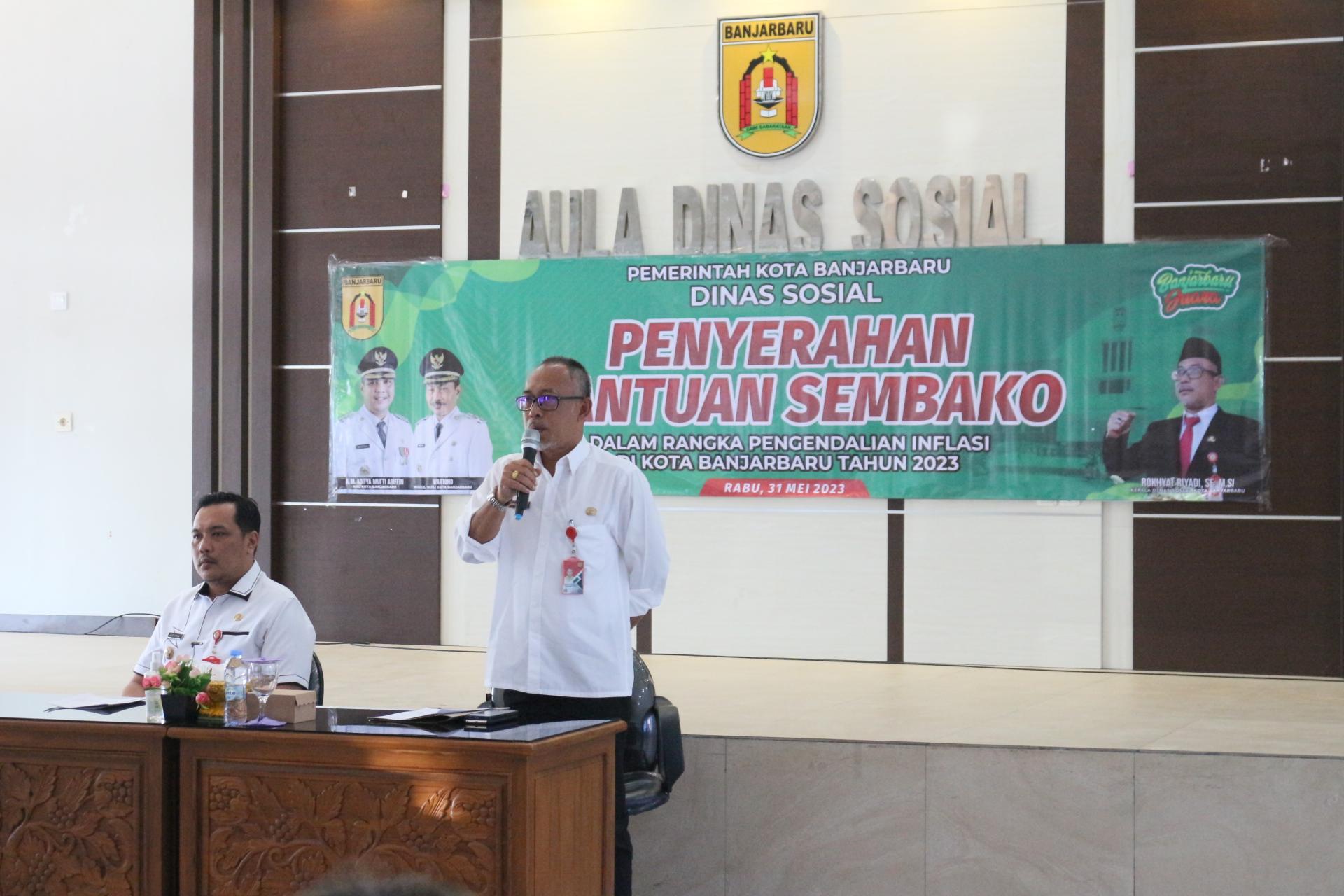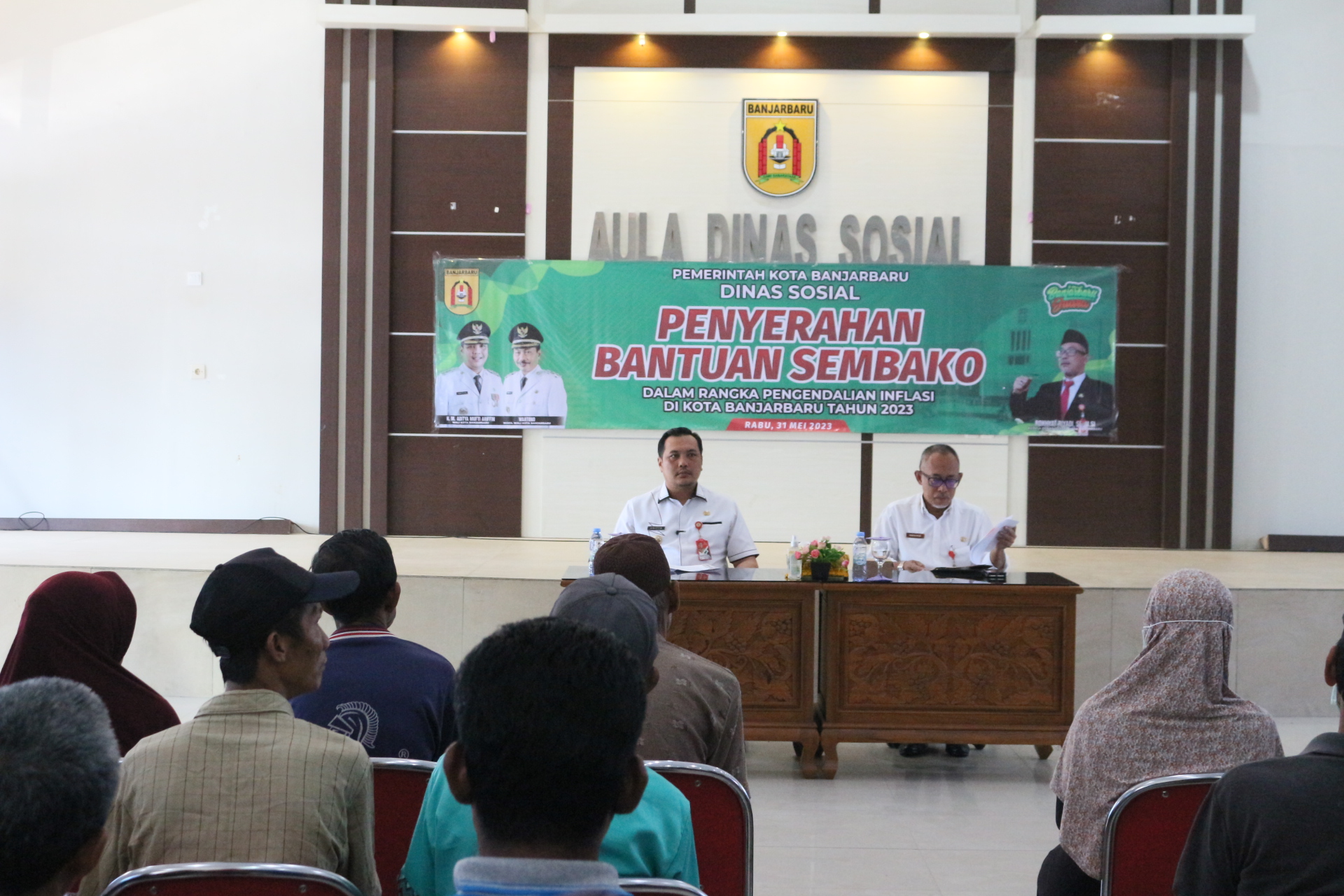 Pemerintah Kota Banjarbaru melalui Dinas Sosial menyerahkan paket bantuan sembako kepada masyarakat kurang mampu.