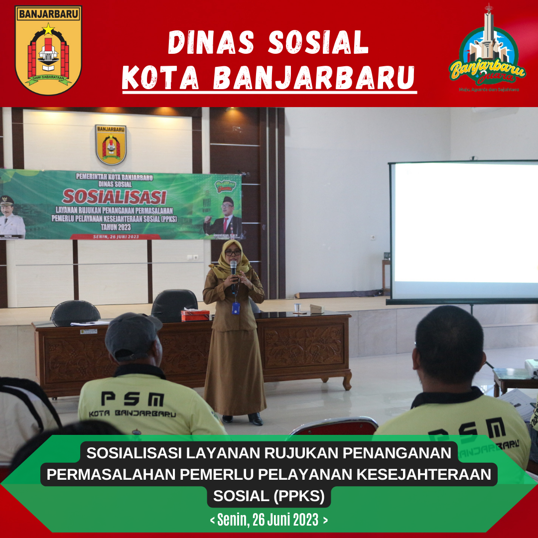 Giat Bidang Rehabilitasi Sosial Seksi Rehabilitasi Sosial Anak & Korban Penyalahgunaan NAPZA & Rehabilitasi Tuna Sosial melaksanakan Sosialisasi Layanan Rujukan Penanganan Permasalahan Pemerlu Pelayanan Kesejahteraan Sosial (PPKS) Tahun 2023 bertempat di Aula KH. Irsyad Djahri.